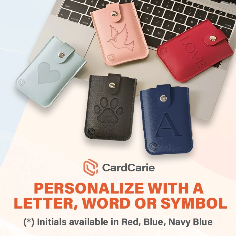 🌟 Distinctly Yours - Avoid mix-ups among friends or family by personalizing your CardCarie with initials or choosing symbols like hearts, stars, or animal symbols. Initials are currently available in Red, Blue, Navy Blue.